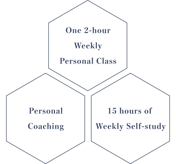 15 hours of weekly self-study × personal coaching × one 2-hour weekly personal class